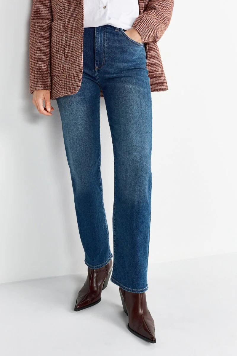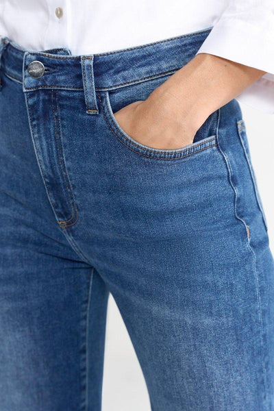 Diese klassische Slim-Jeans mit Mid Waist und leicht verkürztem Bein bringt durch ihre cleane Waschung und den soften Stretch-Denim lässige Eleganz in Deine Alltagslooks – ein stilvolles Essential für jeden Tag!