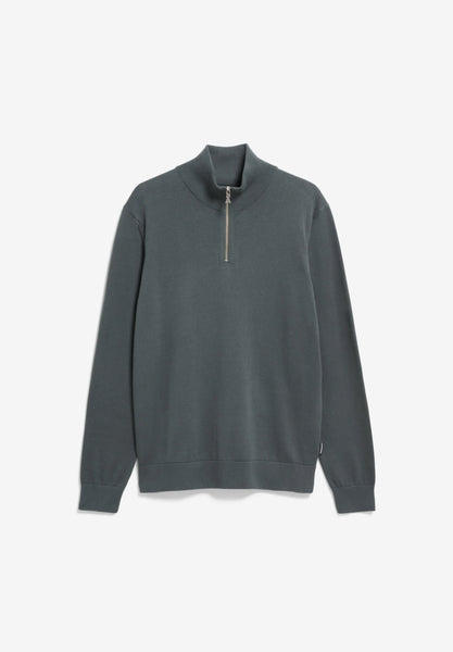 ARMEDANGELS FAABES HALF ZIP KNIT SWEATER Space Steel