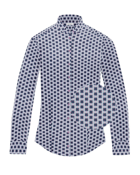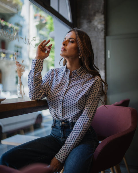 MANILO STRETCH-BLUSE SOPHIE MIT SCHNEEFLOCKEN-PRINT IN ROSA/BLAU