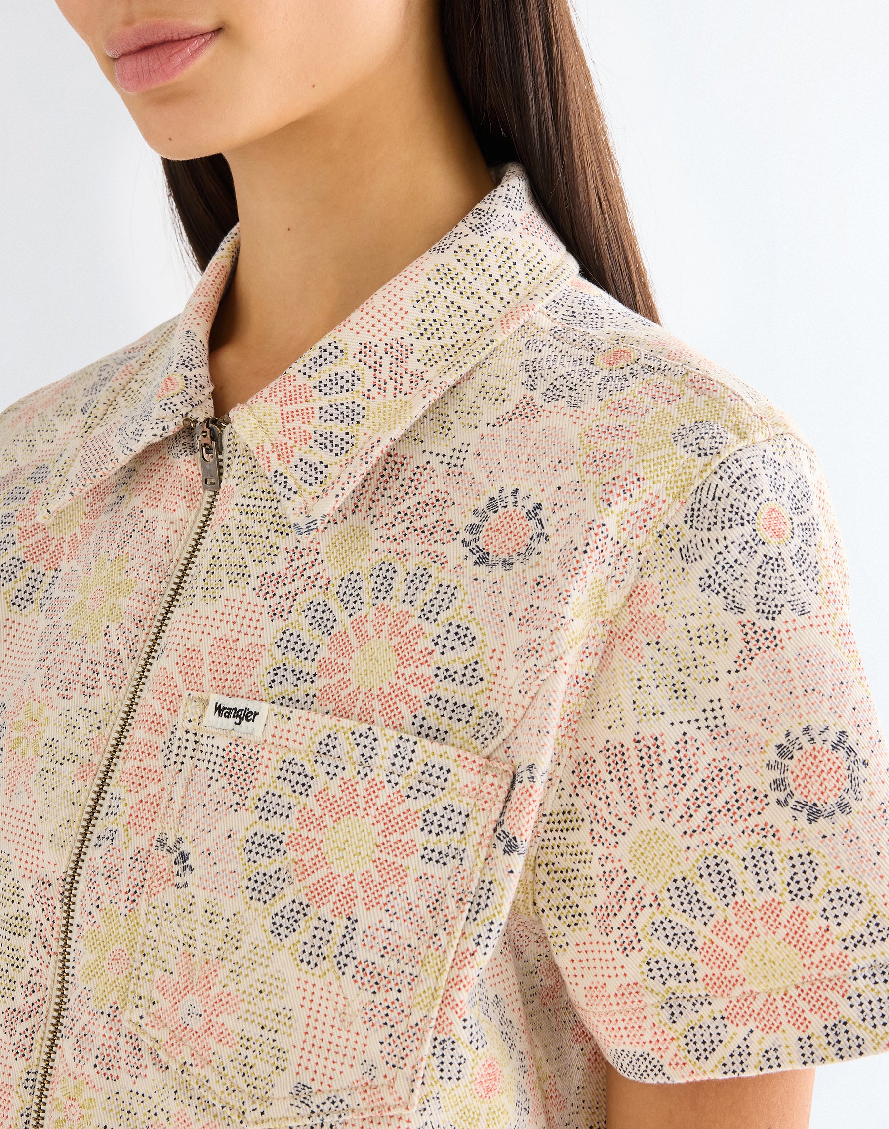 Das verspielte Muster „Firework Floral“ verleiht dem Design eine frische, feminine Note und sorgt für einen individuellen Look mit Vintage-Inspiration. Klassische Details wie der Hemdkragen und die durchgehende Knopfleiste unterstreichen den authentischen Wrangler-Style.