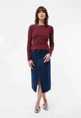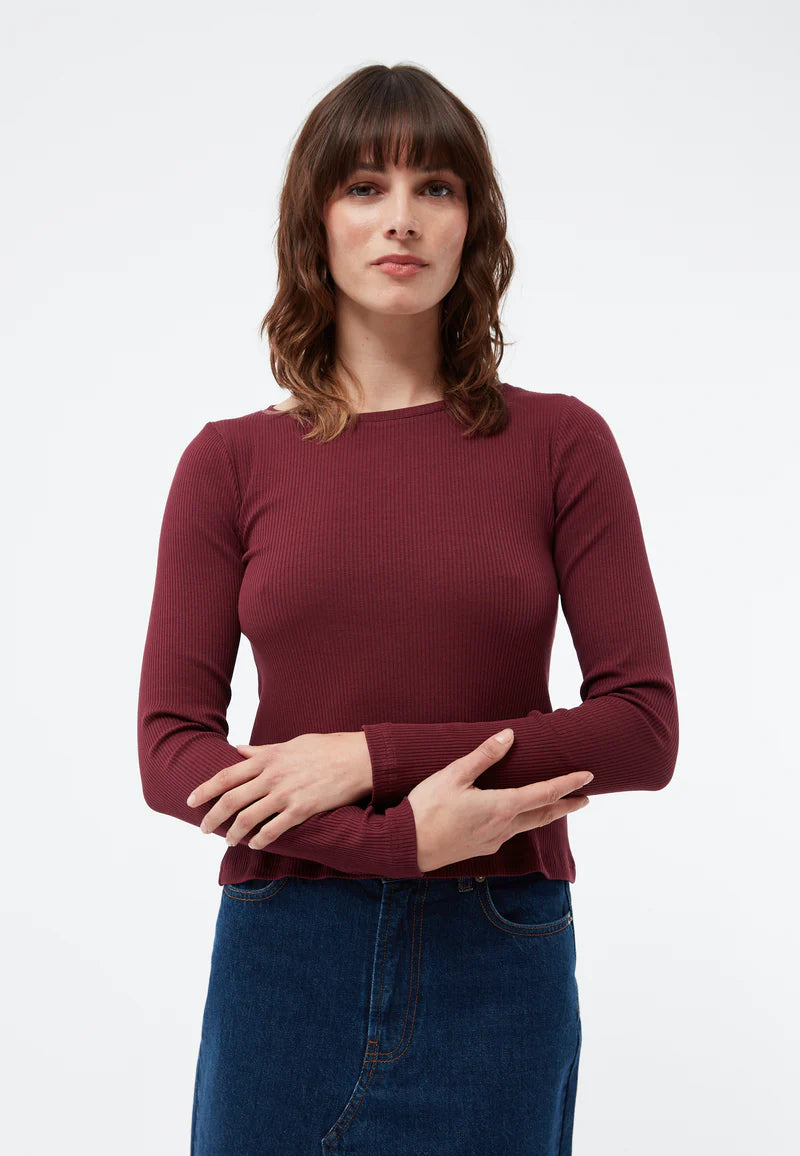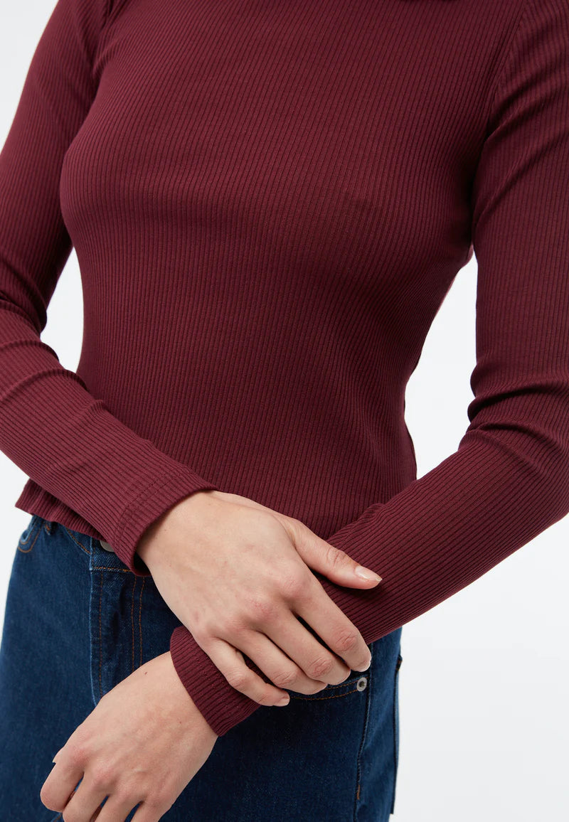 GIVN BERLIN Longsleeve GBROSA mit U-Boot Ausschnitt Rippjersey - Burgundy (Rib)