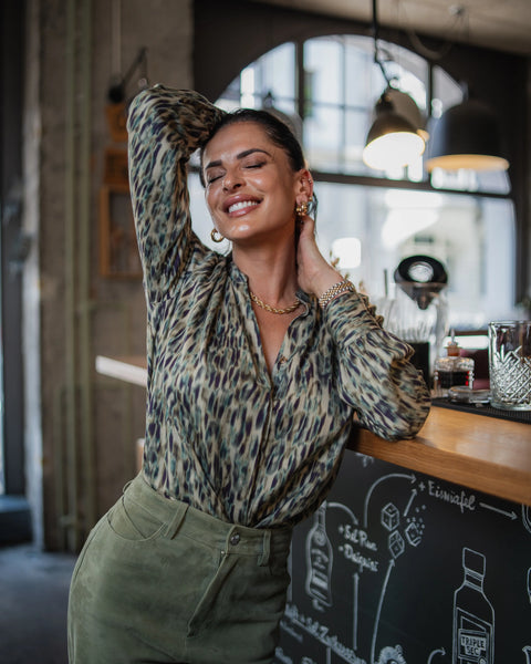MANILO VISKOSE-BLUSE ROSE MIT PRINTMUSTER IN GRÜN