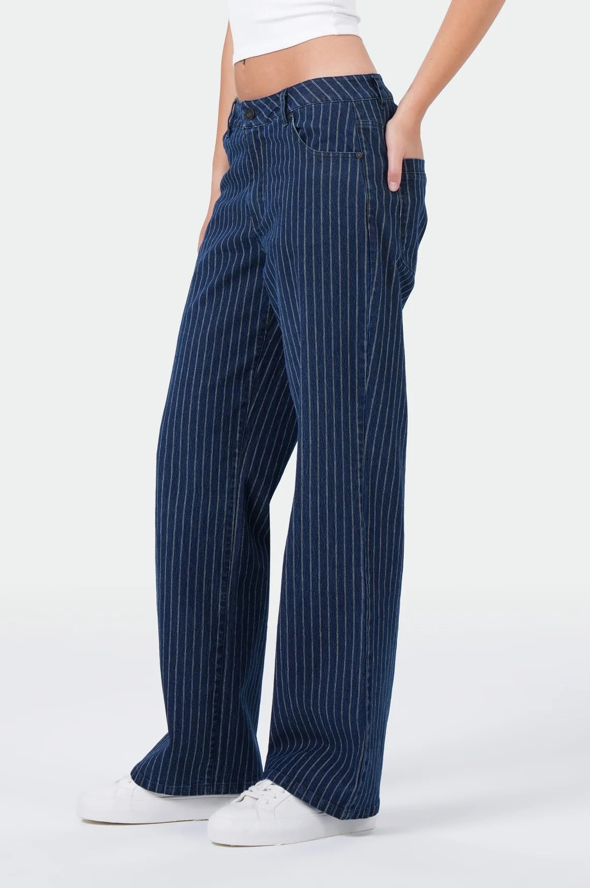 NICOLA Damen Wide Leg Jeans Easy Blau Streifen – Eleganter Nadelstreifen-Look für den Herbst