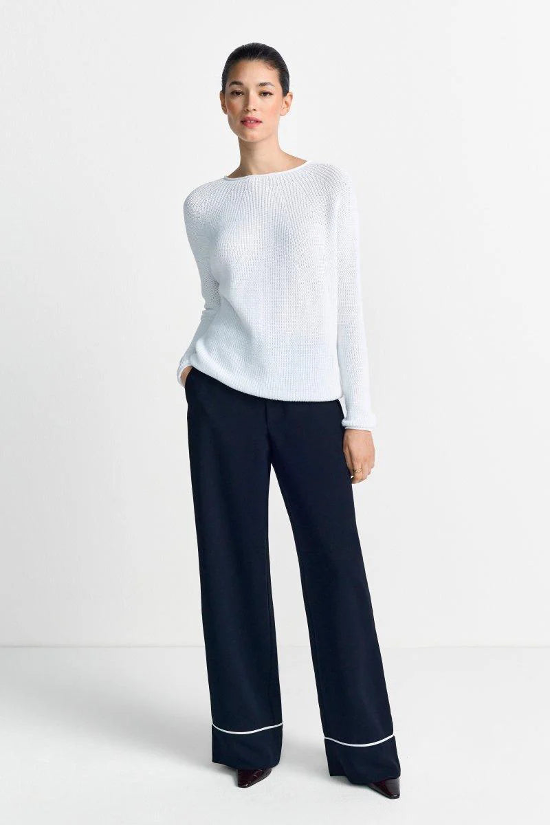 Dieser fein gerippte Strickpullover aus Baumwolle wird durch seine zeitlose Optik und leichte Elastizität zum Allrounder für Deine Alltagslooks! Die vertikal verlaufenden Rippungen und der schlichte Rundhalsausschnitt betonen die Eleganz des Designs.