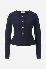 Dieser navyfarbene Strickblazer mit Taillierung und Schößchen wird durch silberne Schmuckknöpfe zum eleganten It-Piece für stilvolle Office- und City-Looks. Kombiniere ihn mit dem passenden Rock zu einem harmonischen Zweiteiler.