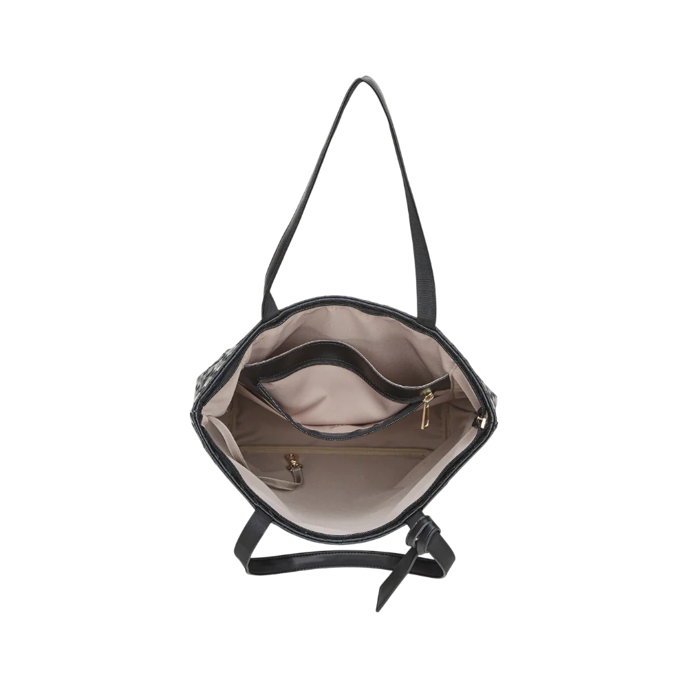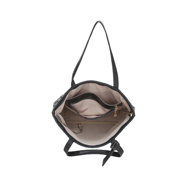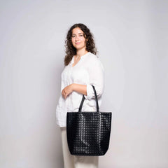 Die Emily Laptop Tasche vereint modernes Design mit praktischer Vielseitigkeit. Gefertigt aus hochwertigem, veganem Leder mit edler geflochtener Optik, besticht sie durch ihre schlichte Eleganz und besondere Haptik. Der grosszügige Shopper mit Innenfach und Reissverschluss bietet ausreichend Platz für Laptop, Unterlagen und alle wichtigen Essentials. Das klassische schwarze Design sorgt für einen zeitlos-professionellen Look – perfekt für Business und Alltag.