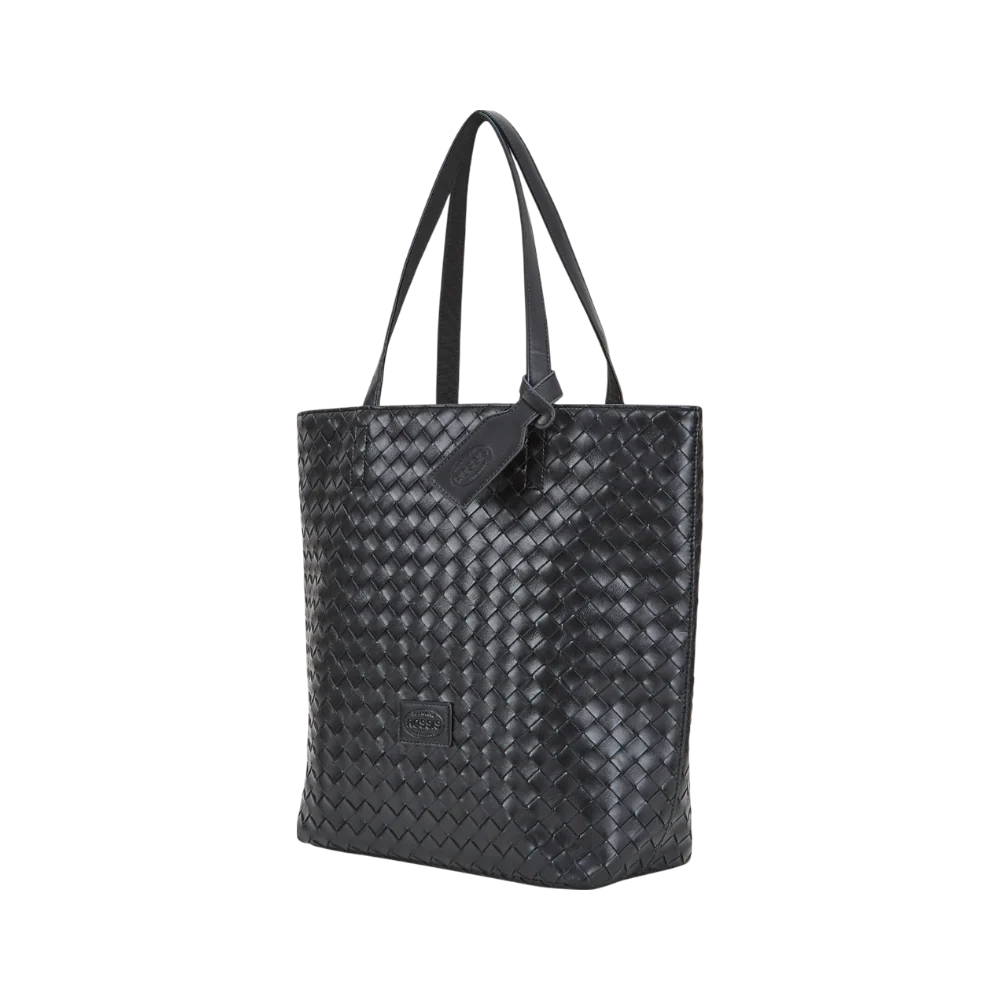 Edle Tasche in veganem Leder mit Flechtoptik in Schwarz