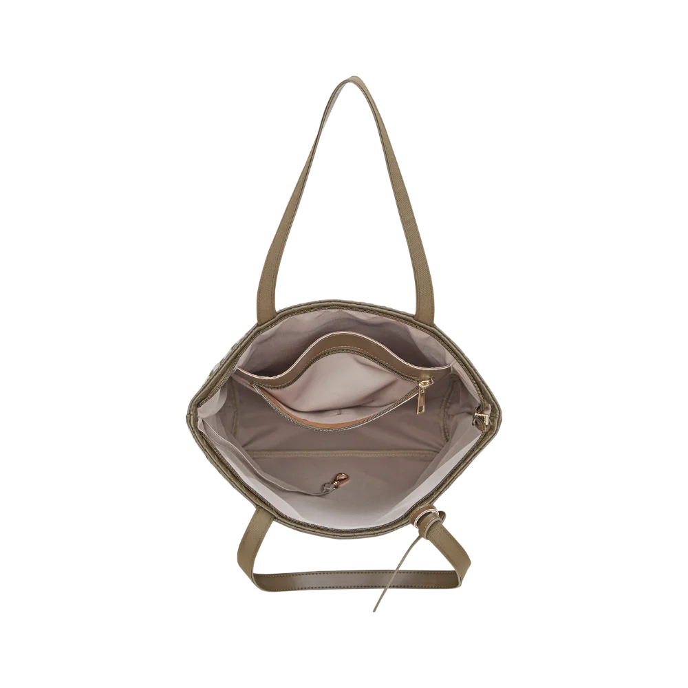 Die Emily Laptoptasche in Olive kombiniert modernes Schweizer Design mit praktischer Vielseitigkeit. Aus hochwertigem, veganem Leder im edler Flechtoptik gefertigt, bietet der geräumige Shopper mit Innenfach & Reissverschluss Platz für Laptop, Unterlagen und Essentials. Das elegante Olivgrün verleiht Business- und Alltagslooks stilvolle Eleganz.
