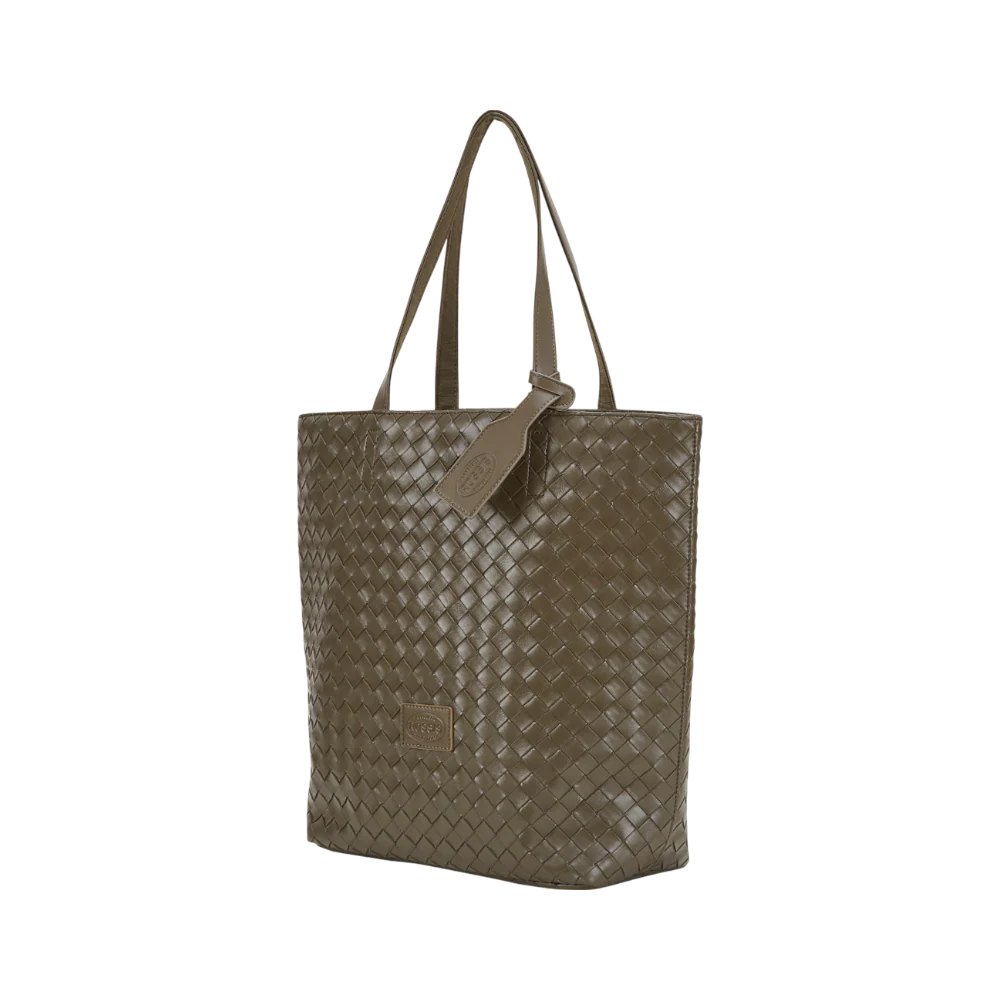 Edle Tasche in veganem Leder in Flechtoptik in Olive
