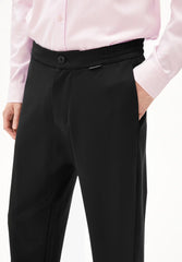 Die TAARNO Hose bietet eine bequeme Passform mit mittelhoher Taille und schmal geschnittenem Bein. Der elastische Gummizug und praktische Eingriffstaschen sorgen für Komfort, während der weiche Jersey-Stoff aus Viskose (LENZING™ ECOVERO™) den ganzen Tag angenehm zu tragen ist.