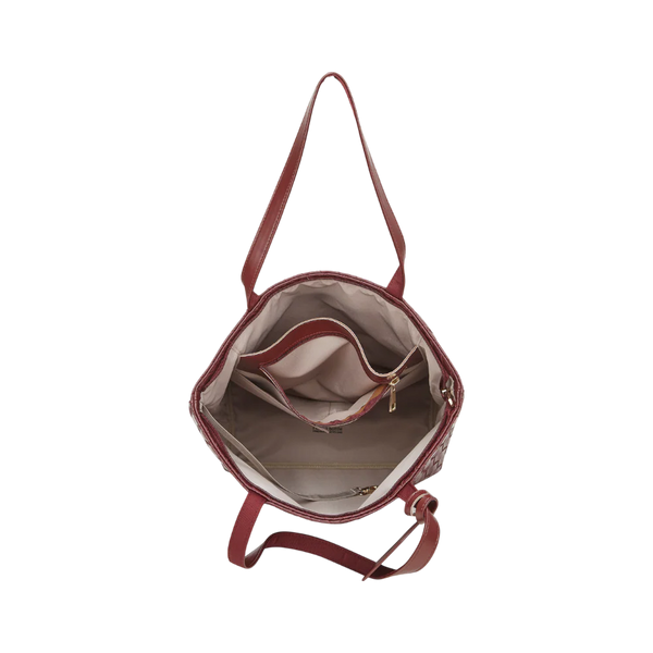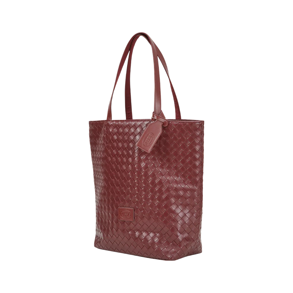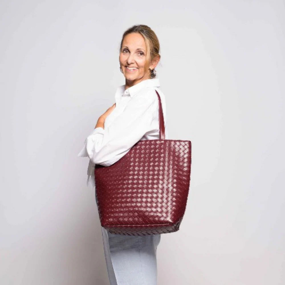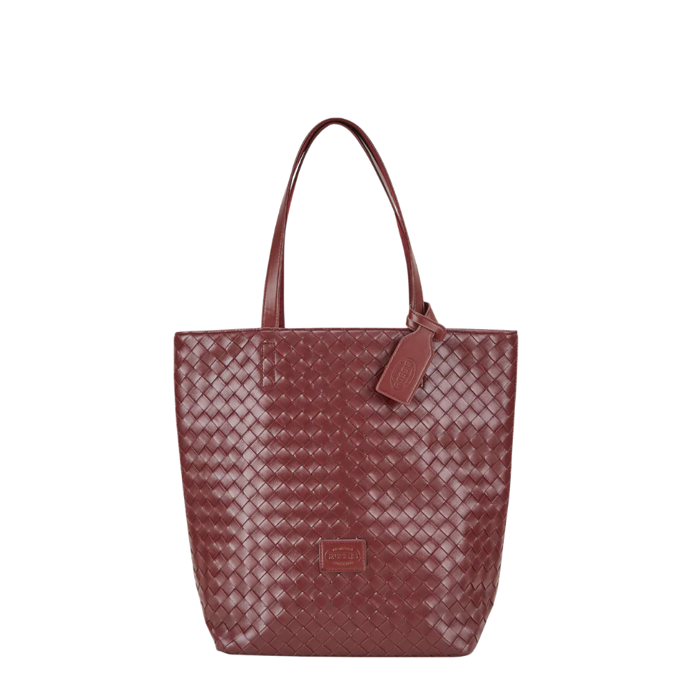 Edle Tasche in veganem Leder mit Flechtoptik in Bordeaux